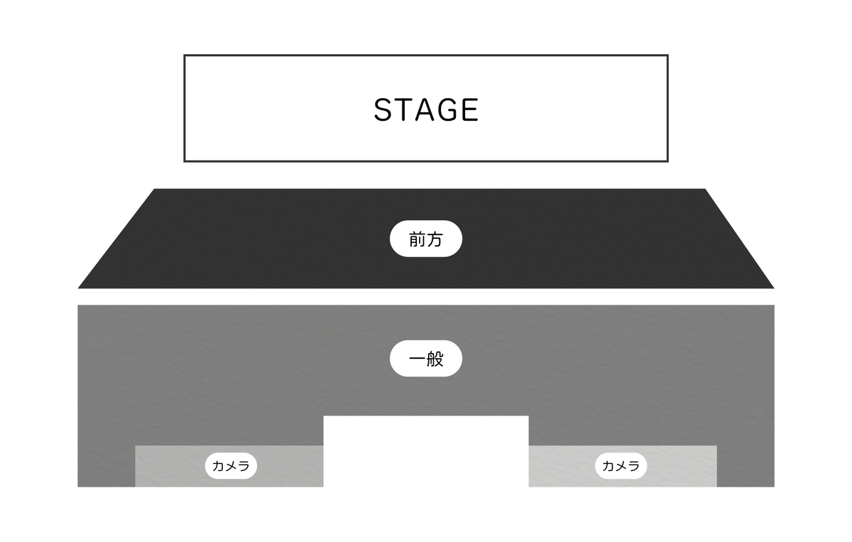 前方椅子席は全席指定席となります。場内椅子席は交換禁止、荷物での確保禁止となりますので、予めご了承の程よろしくお願いいたします。